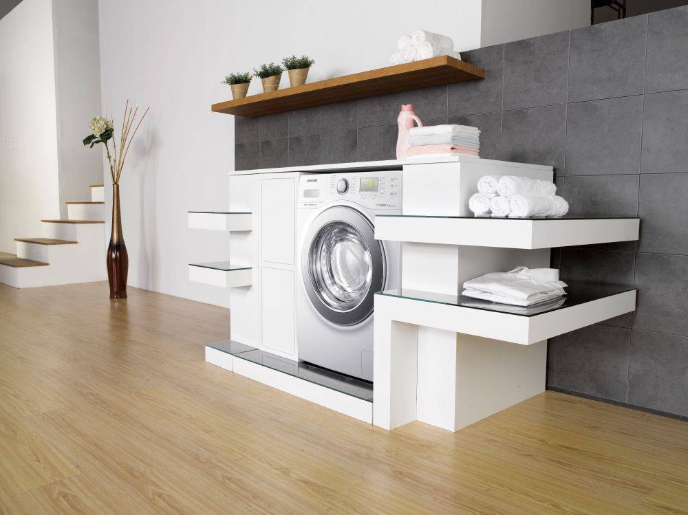 Если вы устанавливаете стиральную машину на какую-то мебель, то предварительно нужно удостовериться, что она выдержит ее весОтдельно следует отметить узкие машины. Как известно, они занимают в разы меньше места, поэтому площадь опоры у них маленькая. Такую вариацию легче растрясти, поэтому на узких бытовых приборах дополнительные 2-3 кг веса особенно будут заметны. Без них не обойтись, так как не получится устранить вибрацию.
