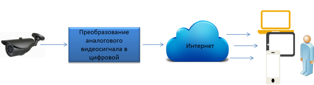 Упрощенно описание IP-видеонаблюдения будет выглядеть следующим образом: