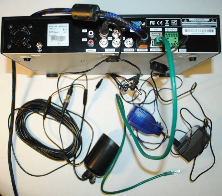 К видеорегистратору MDR-4500 можно подключить 4 аналоговые камеры. Для вывода на монитор предусмотрены выходы VGA и HDMI. Для подключения к локальной сети или к интернету на задней панели предусмотрен Ethernet выход.