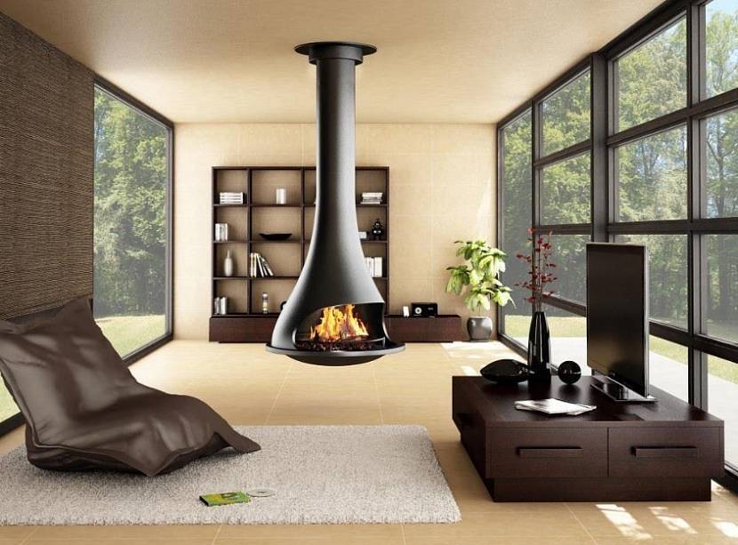 Подвесной камин-капля с вращающейся топкой в стиле хай-текИсточник pinterest.co.uk