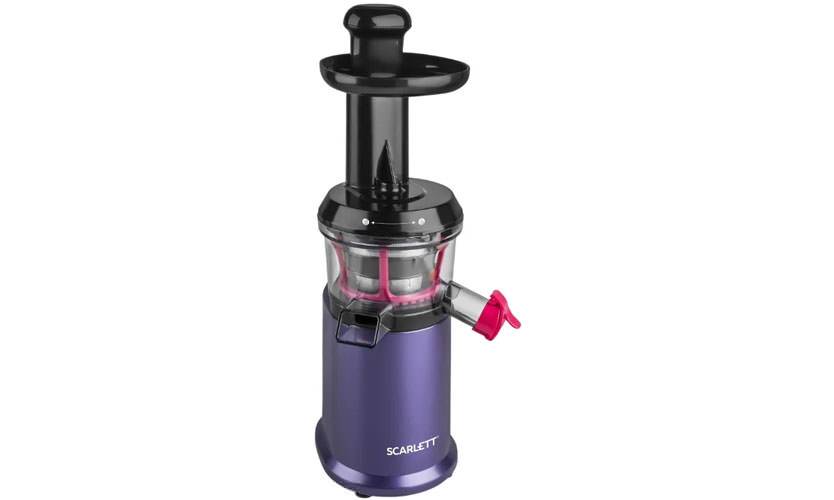 Первый комплимент, который получает данная модель, – это внешний вид. Смотрится стильно и органично впишется в любой интерьер. В нее можно загружать плоды целиком и регулировать количество мякоти по вкусу. Оснащена противокапельной системой, имеет функцию самоочистки. В комплект входят удобный стакан для сока и буклет с полезными рецептами. Среди минусов выделяют довольно ощутимый шум при работе.Отзывы: «Хорошая соковыжималка для тех, кто любит пить свежий сок каждый день. Процесс приготовления занимает 3 минуты и еще не более 5 минут уйдет на чистку и мойку. У соковыжималки нет углов, контейнер для жмыха имеет округлую форму и изготовлен из гладкого пластика, что делает его чистку очень простой. Сетка хорошо отмывается за счет предварительной мойки водой в режиме отжима. Поворотный носик защищает от капель на столе. 2 режима скорости делают эту модель привлекательной и для любителей прозрачного сока, и для почитателей высокого содержания мякоти. Для заготовок вряд ли подойдет, так как жмых удаляется только при полной разборке. Для каждодневного использования мне очень подошла».Отзывы: «Соковыжималка мощная, продукты перерабатываются очень быстро. Такие, как яблоки, груши, можно не резать, если они не слишком крупные. Имеются 2 скорости: для сока без мякоти и с мякотью, что очень удобно, это большой плюс для соковыжималки. Кувшин имеет специальную крышку и можно отфильтровать мякоть с пеной. Корпус из прочного пластика. Виден процесс приготовления сока, можно контролировать момент заполнения контейнера для жмыха. Есть функция предварительной очистки: заливаем воду в толкатель и включаем 2-ю скорость. Финальное мытье занимает минут 5».