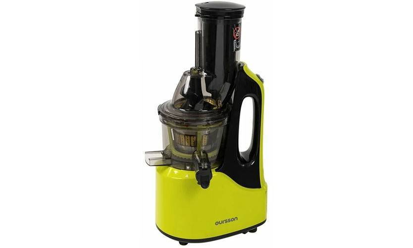 Для переработки всех видов фруктов, овощей и ягод благодаря своеобразной конструкции блока отжима. Предусмотрено более широкое подающее отверстие (75 мм), чем у другой модели производителя Oursson JM8002, чтобы загружать целые фрукты. Но JM7002 не комплектуется чашей для пюре, подносом. Трёхступенчатая сетка-фильтр не даёт мякоти проникать в сок. Есть функция самоочистки, как у REDMOND RJ-912S. Регулировка краника носика позволяет готовить микс при отжиме. Имеет самые большие габариты из четырёх шнековых выжималок (24 x 21 x 48 см) и наибольший вес (7,3 кг).