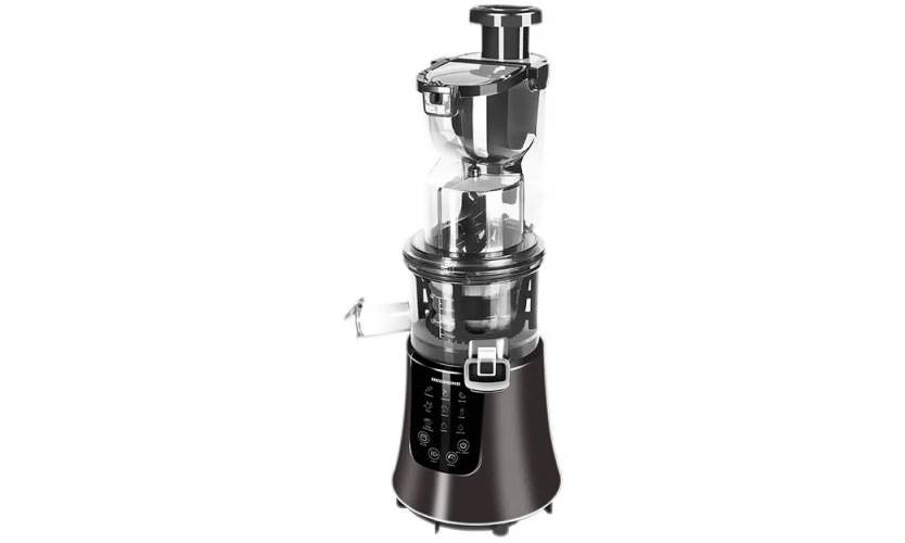 Шнековая вертикальная соковыжималка, оборудованная системой Soft Press, сначала измельчает овощи и фрукты, а затем через фильтр из нержавеющей стали отжимает сок. Продукты целиком загружать нельзя. Сок поступает в резервуар ёмкостью 350 мл, такой же объём у отделения для отходов. Скорость вращения — 65 оборотов в минуту. Её легко разбирать, мыть благодаря особенности креплений и чистящей щёточке, идущей в комплекте. Реверс делает отжим более эффективным. Функция «Антикапля» не даёт напитку вытекать наружу. В случае ошибки при сборке сработает защита — аппарат не включится.