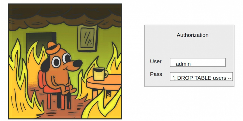- И напоследок символы из нашего значения закомментируют дефолтную кавычку. То есть весь код, который находится после символов , становится нерабочим. У каждой базы данных вызов операции, чтобы закомментировать код, происходит по-разному: бывает #, бывает —, бывает */.