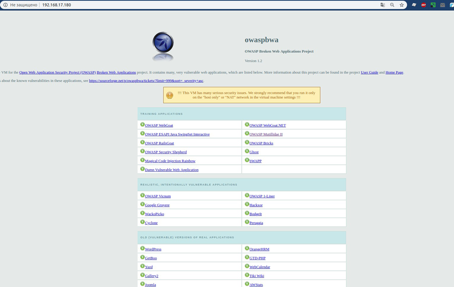 - И самое главное: после того как вы ознакомились с какой-либо теорией о уязвимости, немедленно идите применять ее на практике, так как теория в голове без практики имеет способность пропадать, не подавая виду, быстро и бесследно. И это будет реально напрасно потраченное время. Попрактиковаться можно у себя на проекте с разрешения руководства — а я думаю, оно по-любому разрешит вам, так как хорошо, когда есть человек, который может проверить хоть на какую-то безопасность. Либо можно прогуглить Broken Web Application и по первой ссылке скачать себе приложение, запустить его на VirtualBox и применять там свои наработанные навыки.