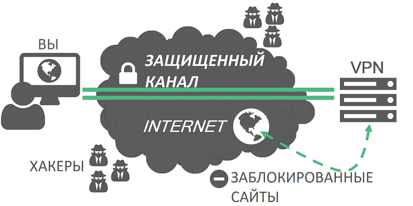 Как вы уже догадались, наш воображаемый туннель — и есть виртуальная частная сеть, построенная на базе более крупной сети — Всемирной паутины. Трафик, проходящий по этому туннелю, скрыт от посторонних, в том числе и от провайдера. Провайдер, если кто не знает, в обычных условиях (без VPN) может отслеживать и контролировать ваши действия в Интернете, так как видит, какие ресурсы вы посещаете. А если вы «нырнете» в VPN, то не сможет. Кроме того, пересылаемая по такому каналу информация становится бесполезной и для любителей чужого добра — хакеров, поскольку зашифрована. Это и есть суть технологии и упрощенный принцип работы VPN.