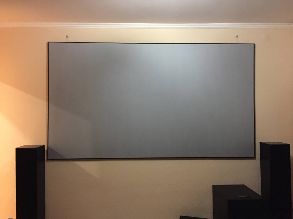 Я вполне допускаю, что все эти утверждения верны, но меня полностью удовлетворяет мой экран и без рамки. Только при полном освещении комнаты может показаться, что ему чего-то не хватает. Поскольку он расположен в моей комнате, такие мелочи меня просто не волнуют. Возможно, темно-зеленая стена сыграла роль своеобразного обрамления экрана. Также я читал, что можно спрятать белые части черными занавесями, но поверхность моего экрана работает практически вся, так что это мне не надо.