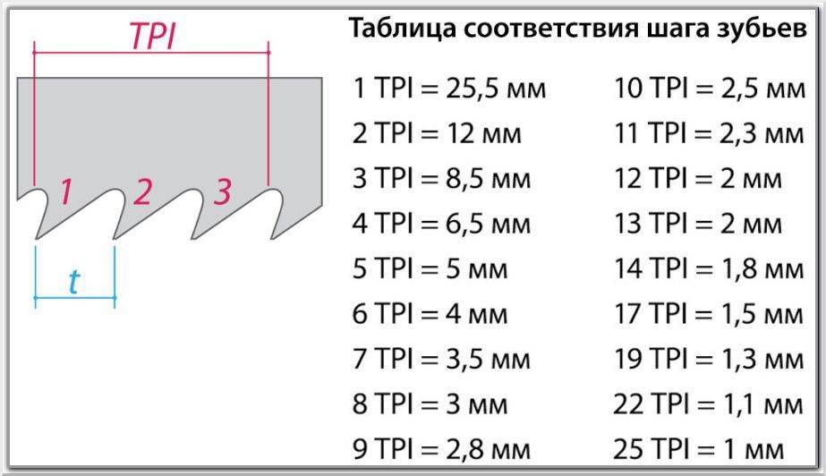 При выборе изделий обращают внимание на показатель TPI, который отражает число зубьев на 1 дюйм. Стоит узнать, из какого материала сделана заготовка