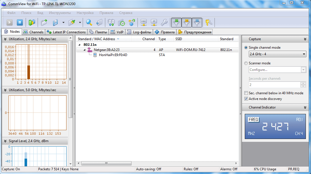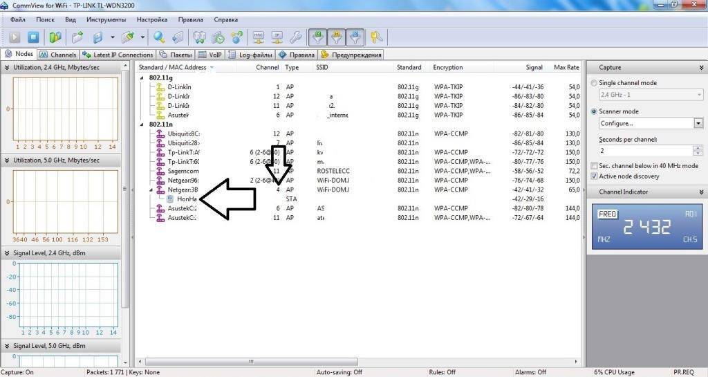- Перейти в главное око программы CommView for Wi-Fi ;