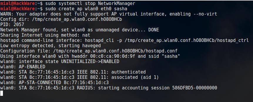 create_ap – скрипт для очень простого и быстрого создания точки доступа, имеется много опций для создания точки доступа, в точности соответствующей вашим запросам.