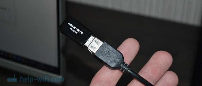 Весь процесс подключения Mercusys MW300UH — до неприличия прост, а особенно, если на компьютере к которому придется его подсоединять установлена актуальная версия ОС, вроде «десятки». Всё сводится к тому, что мы просто выбираем свободный USB-порт и подсоединяем к нему адаптер с помощью кабеля и вуаля.