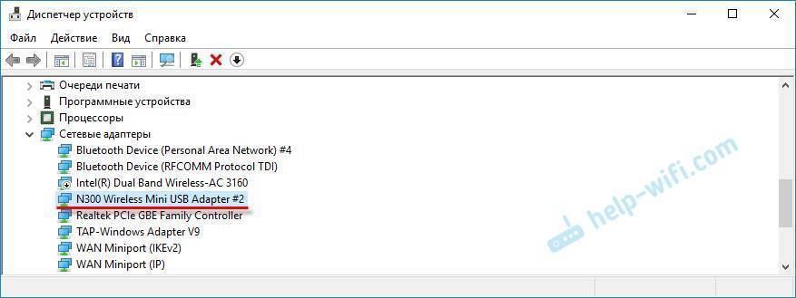 После этого Mercusys MW300UM появился в диспетчере устройств как “N300 Wireless Mini USB Adapter” и начал работать.