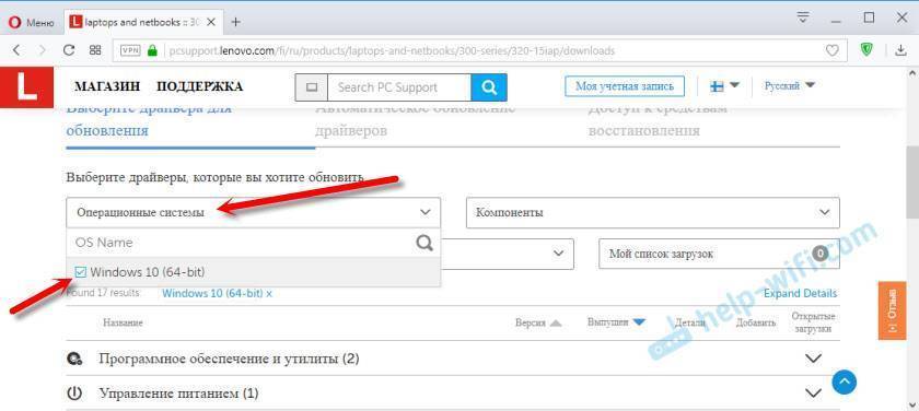 Первым делом выберите операционную систему, которая установлена на вашем ноутбуке. Если у вас, например, Windows 7 и ее нет в списке, а есть только Windows 10 (или наоборот), значит производитель не подготовил драйвера под эту OS. Придется искать их вручную. Можно попробовать найти по ИД оборудования.