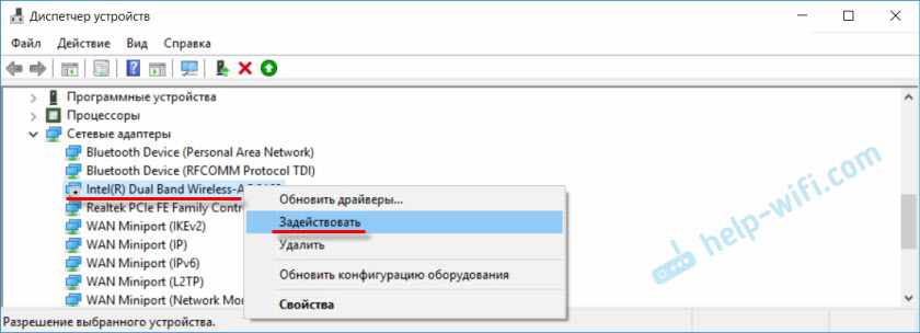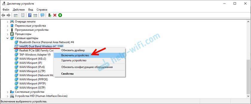 Если возле него есть значок в виде стрелки, то можно попробовать нажать на него правой кнопкой мыши и выбрать ‘Задействовать’.