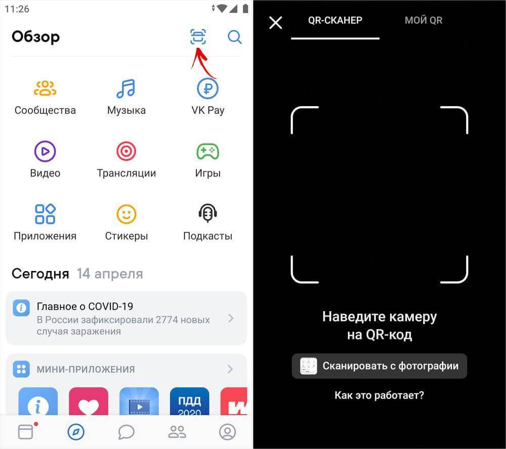 После выполнения всех вышеперечисленных действий будет сгенерирован QR-код, содержащий сведения о сети, включая пароль. Этот код нужно отсканировать, наведя на него камеру другого телефона либо планшета. При этом на последнем должен быть запущен сканер QR-кодов. Кстати, такой имеется в мобильном клиенте ВКонтакте – не обязательно скачивать отдельную программу из магазина приложений Google Play.