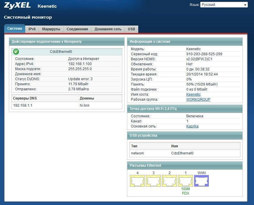 В случае если не загорается индикатор «0» при подключении кабеля от провайдера, это означает, что провод, возможно, имеет повреждения. Если не светится индикатор с номером разъема, к которому подключается патч-корд, это признак неисправности сетевой карты компьютера, или при подключении что-то было сделано неправильно. А если все индикаторы горят, значит, подключение прошло успешно, роутер Keenetic находится в рабочем состоянии и теперь можно переходить к настройкам устройства.