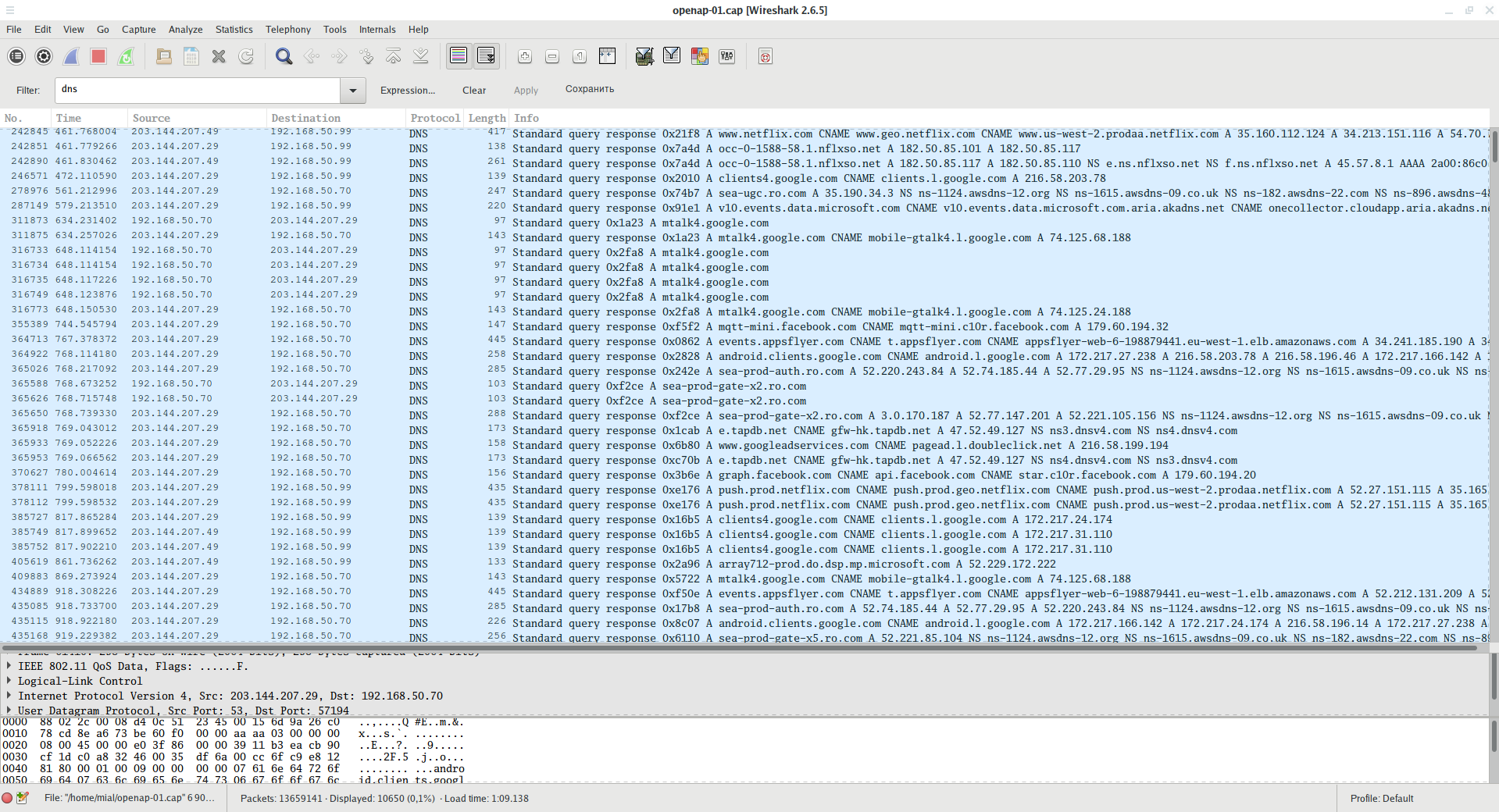 Для анализа данных можно использовать разные программы, я покажу анализ беспроводного трафика с Wireshark.