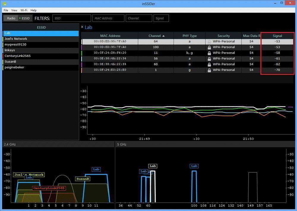 Что же касается альтернативных программ, то с inSSIDer разобраться будет уже не так просто.