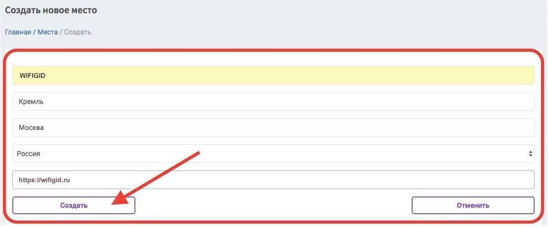 Заполняем поля, как вы хотите. Далее в разделе «Места» создастся новое подключение, куда надо будет добавить хотспот. Перейдите туда и опять нажмите на кнопку с плюсиком.