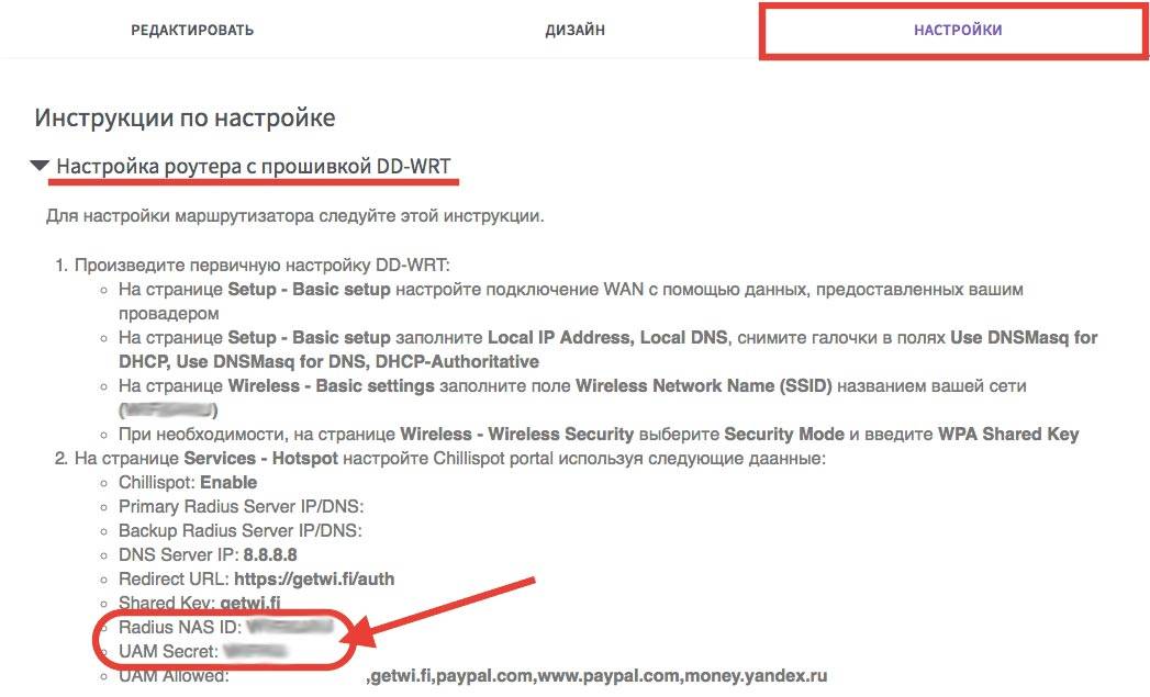 Вводим данные хотспота. Последняя строка — это адрес, на который будет перебрасываться пользователь после авторизации можно ввести любой.