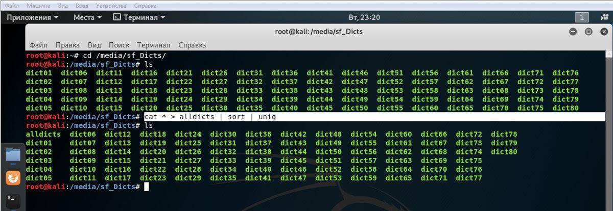 Сначала я собрал коллекцию словарей из разных источников. Это были предустановленные словари в программах для перебора паролей, каталог /usr/share/worldlists/ в самой Kali Linux, базы утекших в Сеть реальных паролей от разных аккаунтов и подборки на профильных форумах. Я привел их к единому формату (кодировке), используя утилиту recode. Дальше переименовал словари по шаблону dict##, где ## — счетчик из двух цифр. Получилось 80 словарей.