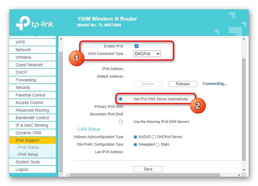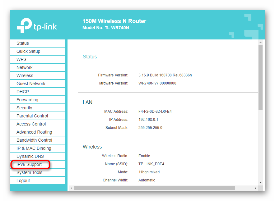 Многие современные роутеры по умолчанию поддерживают протокол IPv6 и обеспечивают доступ к сети, однако в некоторых моделях этот параметр нужно включать самостоятельно. Если по умолчанию поддержка отключена или это действие было осуществлено пользователем вручную, доступа к сети не будет, поэтому обязательно нужно проверить веб-интерфейс маршрутизатора.