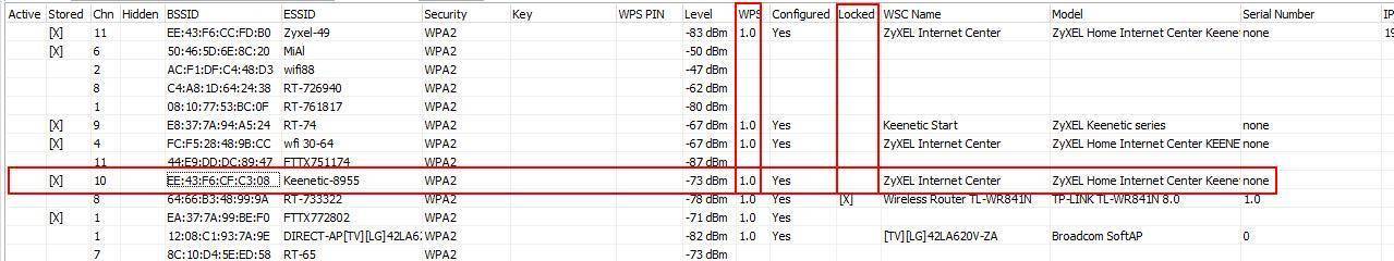 Обратите внимание, что нам доступна расширенная информация о точках доступа. В том числе, можно увидеть точную модель (поля WSC Name и Model) для ТД с WPS.