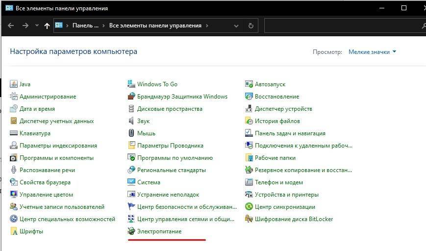 Открываем «Электропитание»