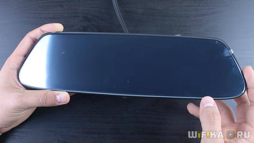 Само зеркало заднего вида довольно-таки тяжеленькое и массивное внешне. Дисплей имеет диагональ 8″ и матрицу с разрешением 1280х480.