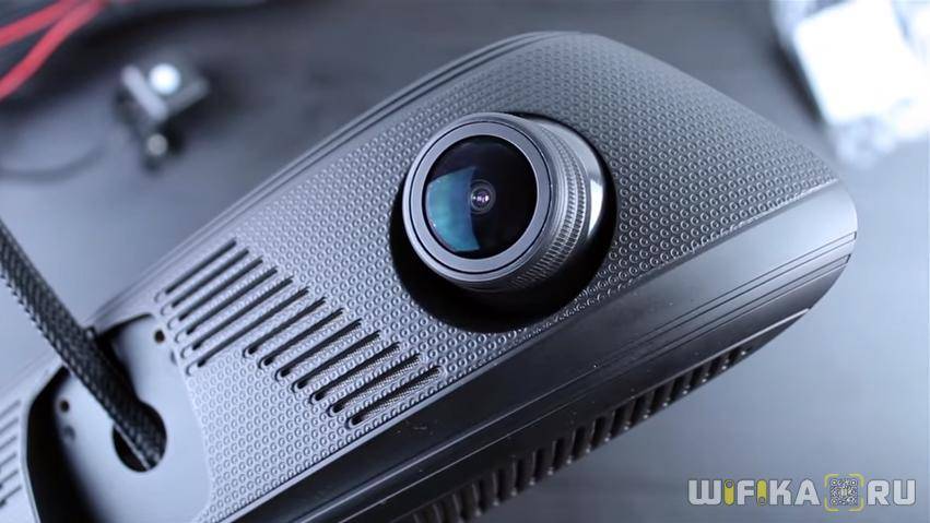 С тыльной стороны решетка вентиляции, шнур для подключения камеры заднего вида и основная камера видеорегистратора. Объектив может поворачиваться, что удобно при установке в автомобиле.